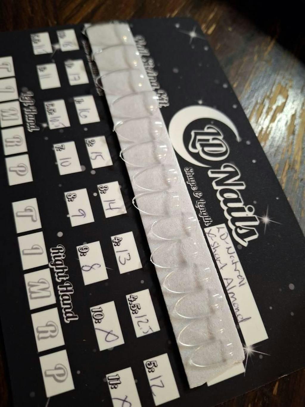 💅🏻Choose your desired nail length and shape and I'll ship you a sizing kit consisting of 10-14 (depending on the brand/shape) unfinished nails. Consider ordering in all shapes and lengths you’re interested in, different shapes & lengths fit differently.