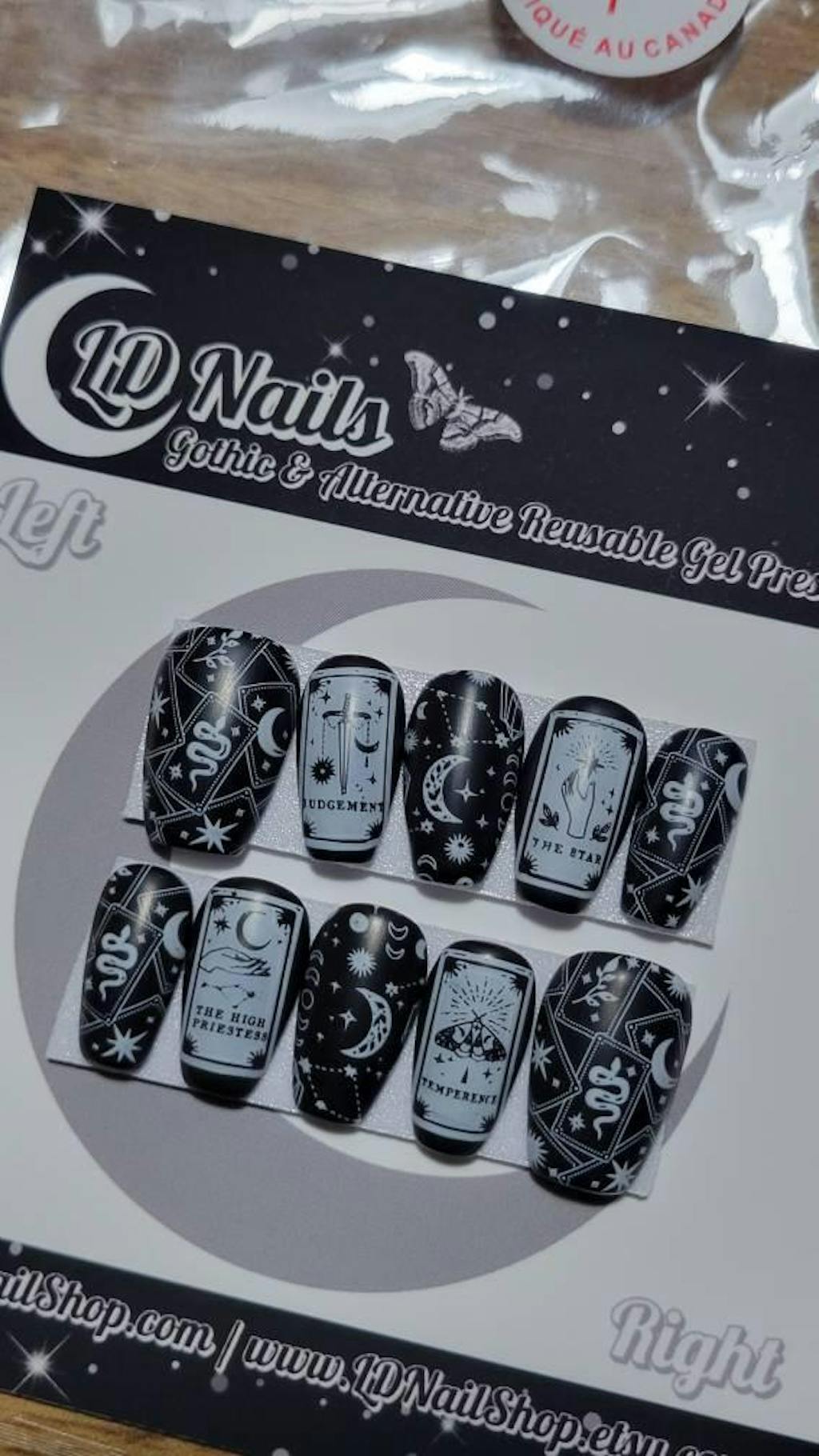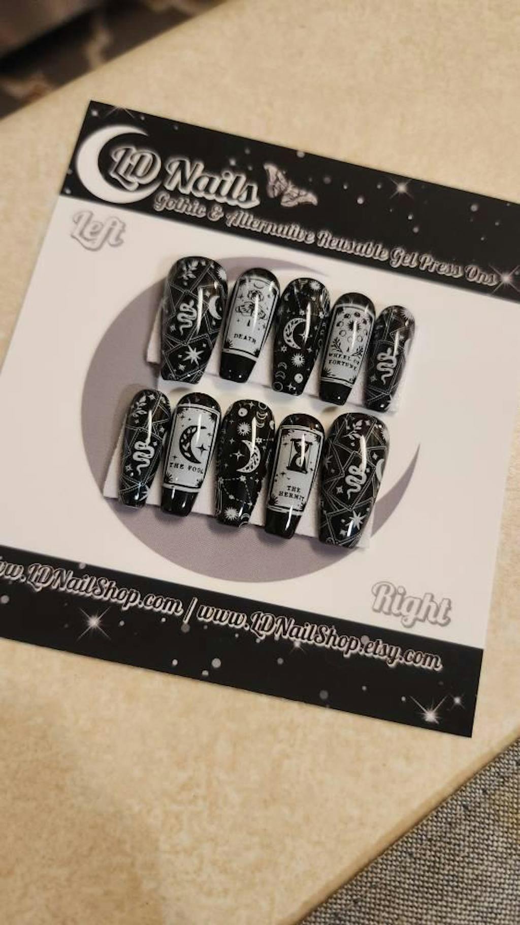 🌙 Tarot Luna: black and white Celestial Tarot witchy press on nails.